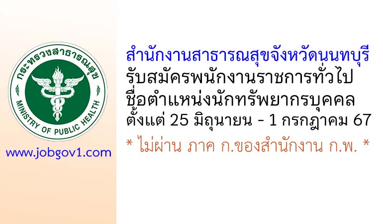 สำนักงานสาธารณสุขจังหวัดนนทบุรี รับสมัครพนักงานราชการทั่วไป ตำแหน่งนักทรัพยากรบุคคล ตั้งแต่ 25 มิถุนายน – 1 กรกฎาคม 2567