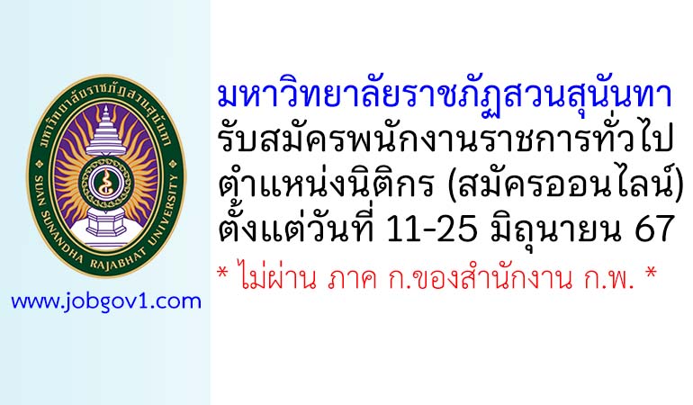 มหาวิทยาลัยราชภัฏสวนสุนันทา รับสมัครพนักงานราชการทั่วไป ตำแหน่งนิติกร ตั้งแต่วันที่ 11-25 มิถุนายน 2567