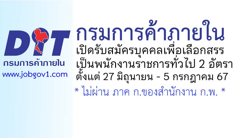 กรมการค้าภายใน รับสมัครบุคคลเพื่อเลือกสรรเป็นพนักงานราชการทั่วไป 2 อัตรา ตั้งแต่ 27 มิถุนายน – 5 กรกฎาคม 2567