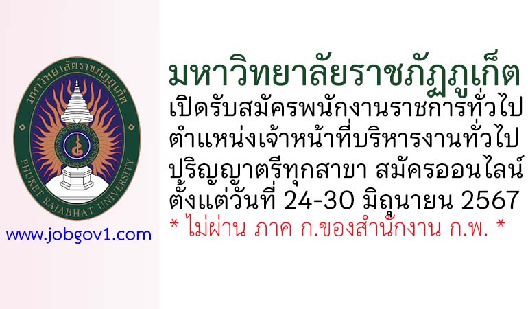 มหาวิทยาลัยราชภัฏภูเก็ต รับสมัครพนักงานราชการทั่วไป ตำแหน่งเจ้าหน้าที่บริหารงานทั่วไป ตั้งแต่วันที่ 24-30 มิถุนายน 2567