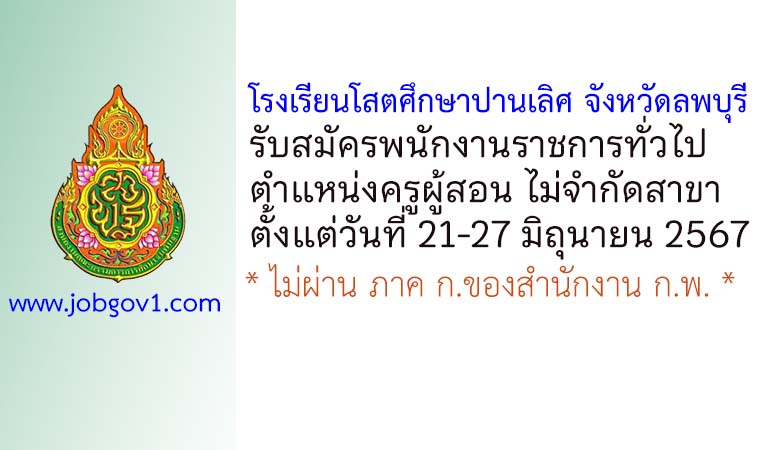โรงเรียนโสตศึกษาปานเลิศ จังหวัดลพบุรี รับสมัครพนักงานราชการทั่วไป ตำแหน่งครูผู้สอน ไม่จำกัดสาขา ตั้งแต่วันที่ 21-27 มิถุนายน 2567