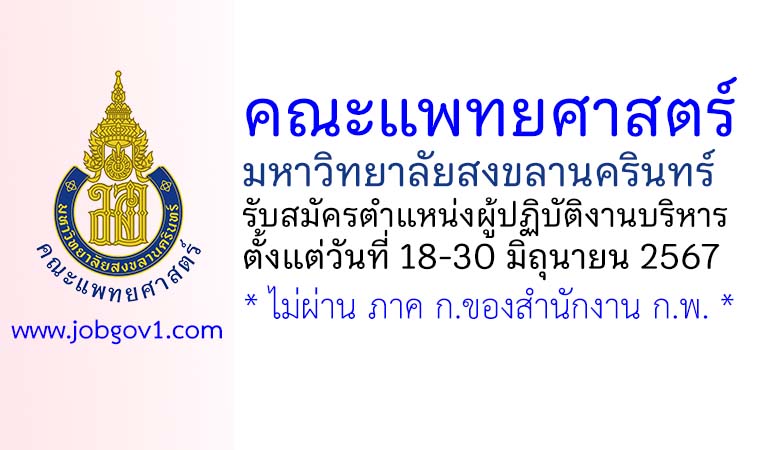 คณะแพทยศาสตร์ มหาวิทยาลัยสงขลานครินทร์ รับสมัครตำแหน่งผู้ปฏิบัติงานบริหาร ตั้งแต่วันที่ 18-30 มิถุนายน 2567