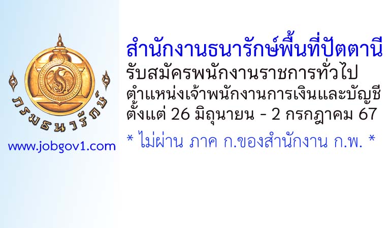 สำนักงานธนารักษ์พื้นที่ปัตตานี รับสมัครพนักงานราชการทั่วไป ตำแหน่งเจ้าพนักงานการเงินและบัญชี ตั้งแต่ 26 มิถุนายน – 2 กรกฎาคม 2567