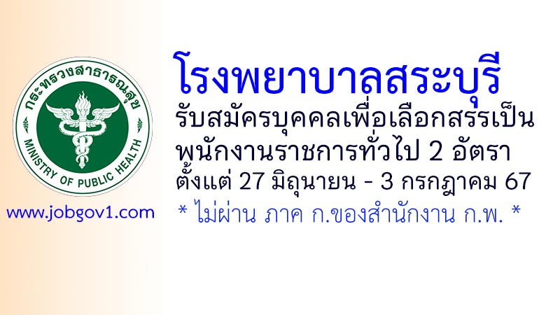 โรงพยาบาลสระบุรี รับสมัครบุคคลเพื่อเลือกสรรเป็นพนักงานราชการทั่วไป 2 อัตรา ตั้งแต่ 27 มิถุนายน – 3 กรกฎาคม 2567