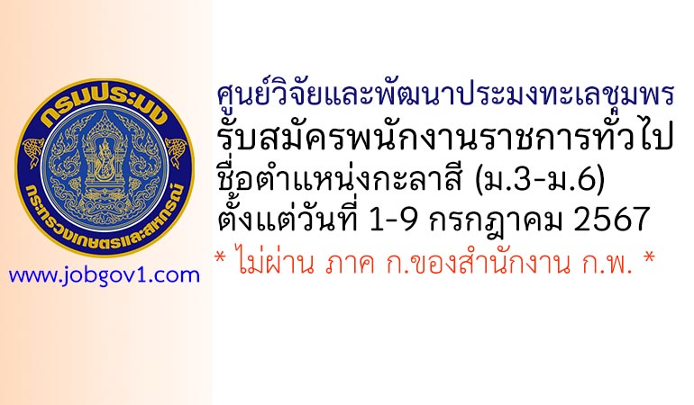 ศูนย์วิจัยและพัฒนาประมงทะเลชุมพร รับสมัครพนักงานราชการทั่วไป ตำแหน่งกะลาสี ตั้งแต่วันที่ 1-9 กรกฎาคม 2567