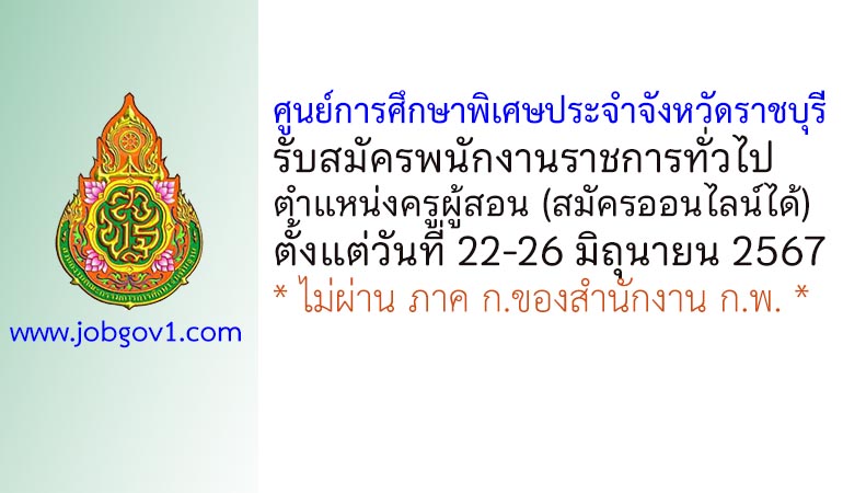 ศูนย์การศึกษาพิเศษประจำจังหวัดราชบุรี รับสมัครพนักงานราชการทั่วไป ตำแหน่งครูผู้สอน ตั้งแต่วันที่ 22-26 มิถุนายน 2567