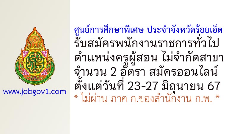 ศูนย์การศึกษาพิเศษ ประจำจังหวัดร้อยเอ็ด รับสมัครพนักงานราชการทั่วไป ตำแหน่งครูผู้สอน ไม่จำกัดสาขา 2 อัตรา ตั้งแต่วันที่ 23-27 มิถุนายน 2567