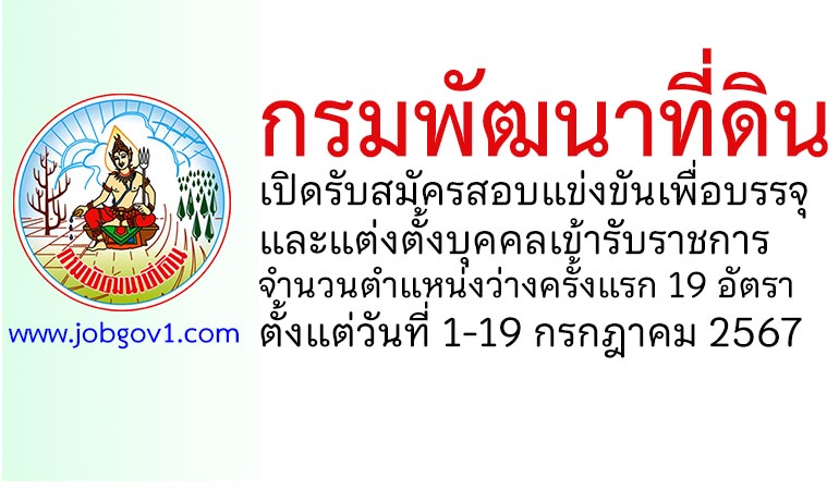 กรมพัฒนาที่ดิน รับสมัครสอบแข่งขันเพื่อบรรจุและแต่งตั้งบุคคลเข้ารับราชการ 19 อัตรา ตั้งแต่วันที่ 1-19 กรกฎาคม 2567