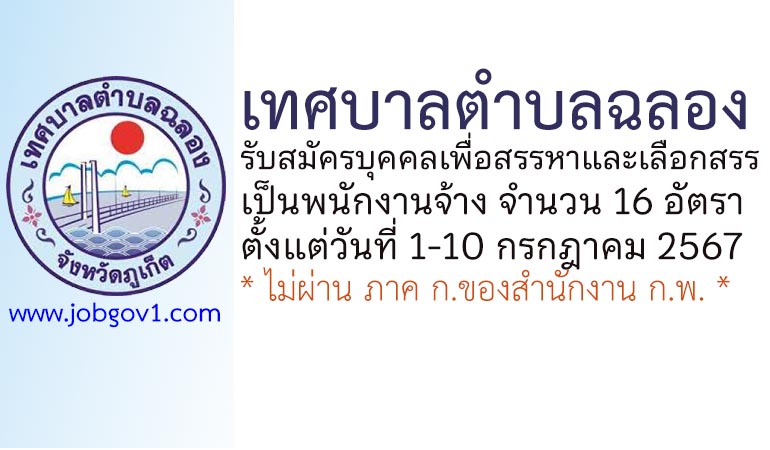 เทศบาลตำบลฉลอง รับสมัครบุคคลเพื่อสรรหาและเลือกสรรเป็นพนักงานจ้าง 16 อัตรา ตั้งแต่วันที่ 1-10 กรกฎาคม 2567