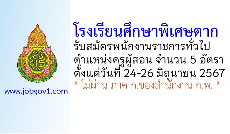 โรงเรียนศึกษาพิเศษตาก รับสมัครพนักงานราชการทั่วไป ตำแหน่งครูผู้สอน 5 อัตรา ตั้งแต่วันที่ 24-26 มิถุนายน 2567
