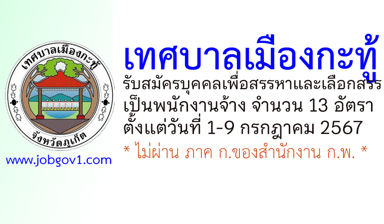 เทศบาลเมืองกะทู้ รับสมัครบุคคลเพื่อสรรหาและเลือกสรรเป็นพนักงานจ้าง 13 อัตรา ตั้งแต่วันที่ 1-9 กรกฎาคม 2567