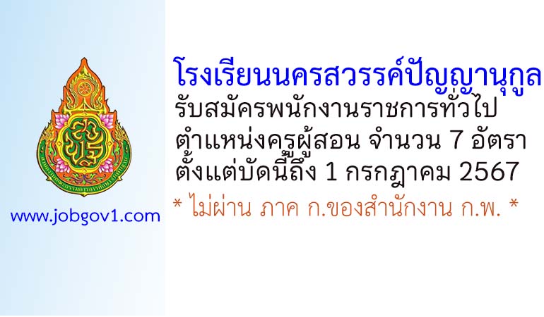 โรงเรียนนครสวรรค์ปัญญานุกูล รับสมัครพนักงานราชการทั่วไป ตำแหน่งครูผู้สอน 7 อัตรา ตั้งแต่บัดนี้ถึง 1 กรกฎาคม 2567