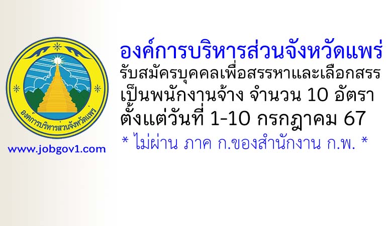 องค์การบริหารส่วนจังหวัดแพร่ รับสมัครบุคคลเพื่อสรรหาและเลือกสรรเป็นพนักงานจ้าง 10 อัตรา ตั้งแต่วันที่ 1-10 กรกฎาคม 2567