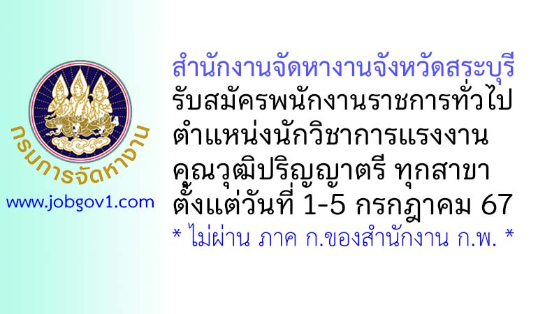 สำนักงานจัดหางานจังหวัดสระบุรี รับสมัครพนักงานราชการทั่วไป ตำแหน่งนักวิชาการแรงงาน ตั้งแต่วันที่ 1-5 กรกฎาคม 2567