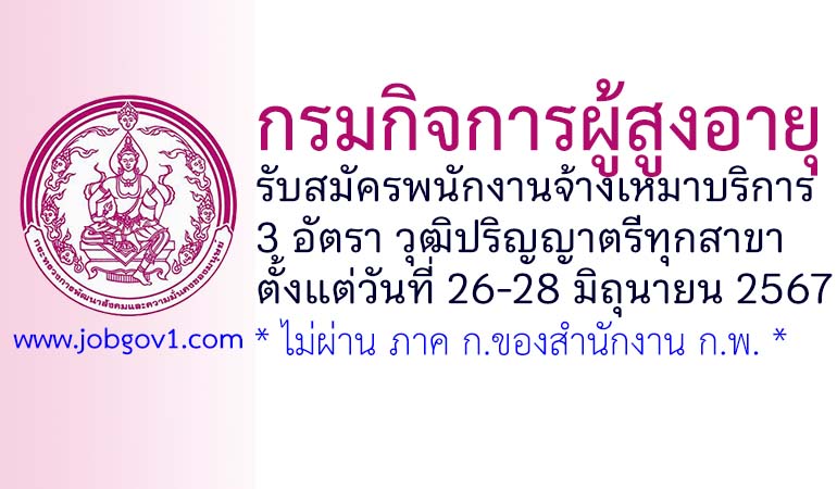 กรมกิจการผู้สูงอายุ รับสมัครพนักงานจ้างเหมาบริการ 3 อัตรา ตั้งแต่วันที่ 26-28 มิถุนายน 2567