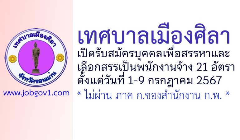 เทศบาลเมืองศิลา รับสมัครบุคคลเพื่อสรรหาและเลือกสรรเป็นพนักงานจ้าง 21 อัตรา ตั้งแต่วันที่ 1-9 กรกฎาคม 2567