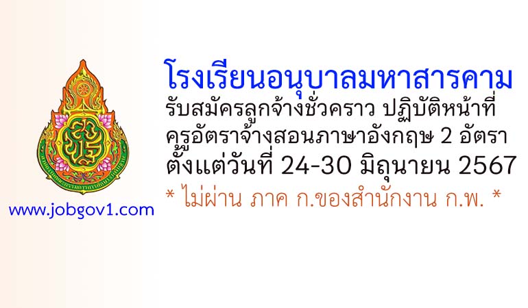 ประกาศโรงเรียนอนุบาลมหาสารคาม เรื่อง ประกาศรับสมัครบุคคลเพื่อคัดเลือกเป็นลูกจ้างชั่วคราว ปฏิบัติหน้าที่ ครูอัตราจ้างสอนภาษาอังกฤษ ปีการศึกษา 2567