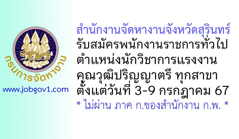 สำนักงานจัดหางานจังหวัดสุรินทร์ รับสมัครพนักงานราชการทั่วไป ตำแหน่งนักวิชาการแรงงาน ตั้งแต่วันที่ 3-9 กรกฎาคม 2567