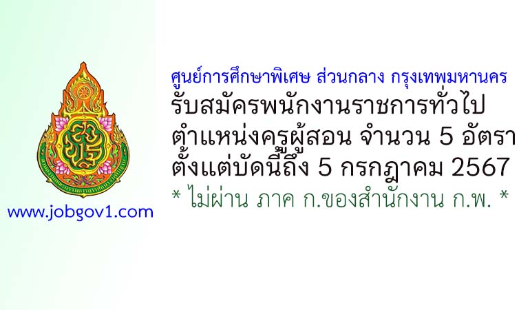 ศูนย์การศึกษาพิเศษ ส่วนกลาง กรุงเทพมหานคร รับสมัครพนักงานราชการทั่วไป ตำแหน่งครูผู้สอน 5 อัตรา ตั้งแต่บัดนี้ถึง 5 กรกฎาคม 2567