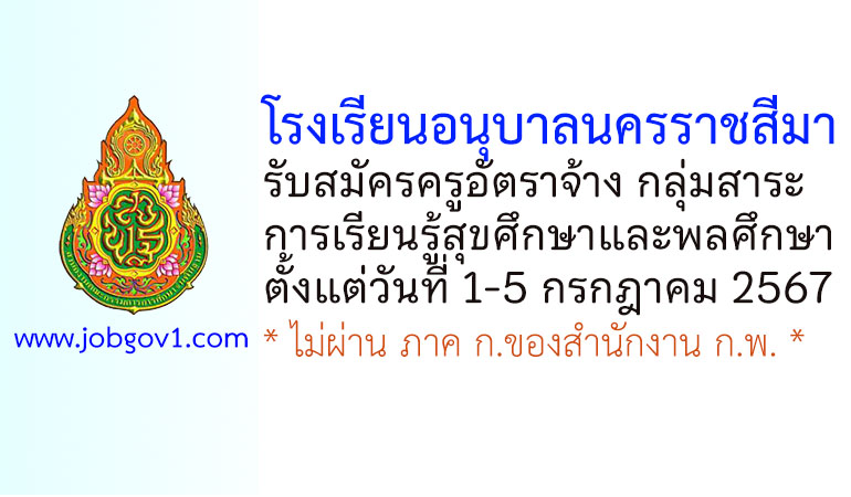 โรงเรียนอนุบาลนครราชสีมา รับสมัครครูอัตราจ้าง กลุ่มสาระการเรียนรู้สุขศึกษาและพลศึกษา ตั้งแต่วันที่ 1-5 กรกฎาคม 2567