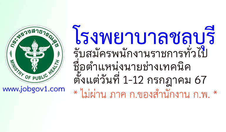 โรงพยาบาลชลบุรี รับสมัครพนักงานราชการทั่วไป ตำแหน่งนายช่างเทคนิค ตั้งแต่วันที่ 1-12 กรกฎาคม 2567
