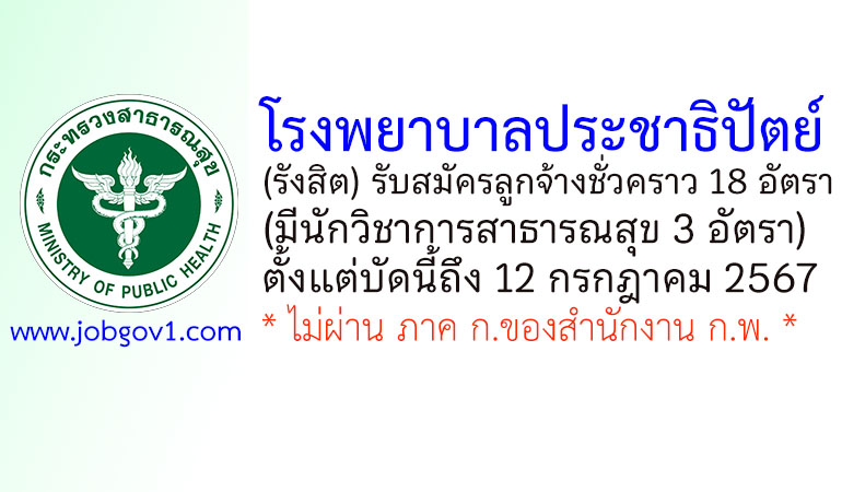 โรงพยาบาลประชาธิปัตย์ รับสมัครลูกจ้างชั่วคราว 18 อัตรา ตั้งแต่บัดนี้ถึง 12 กรกฎาคม 2567