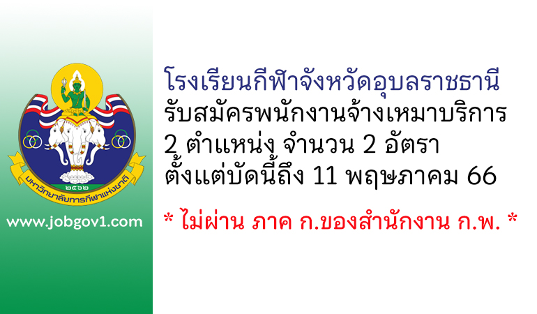 โรงเรียนกีฬาจังหวัดอุบลราชธานี รับสมัครพนักงานจ้างเหมาบริการ 2 อัตรา ตั้งแต่บัดนี้ถึง 11 พฤษภาคม 2566