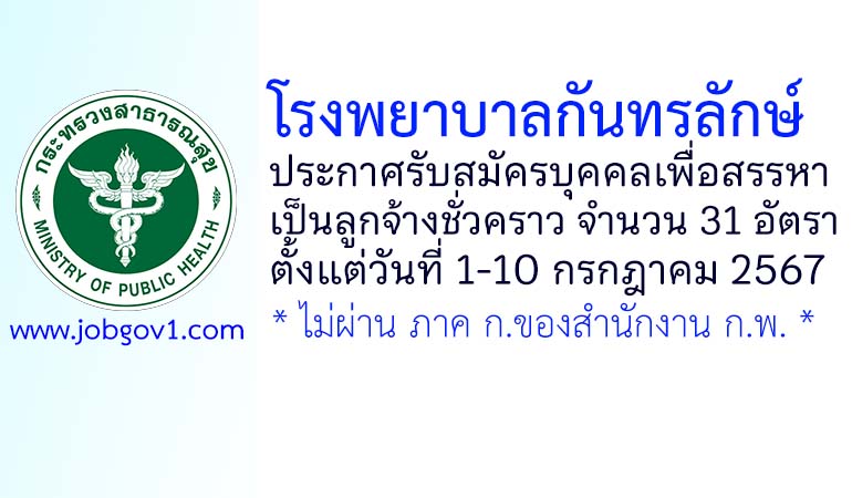 โรงพยาบาลกันทรลักษ์ รับสมัครบุคคลเพื่อสรรหาเป็นลูกจ้างชั่วคราว 31 อัตรา ตั้งแต่วันที่ 1-10 กรกฎาคม 2567