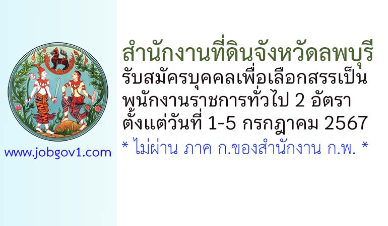 สำนักงานที่ดินจังหวัดลพบุรี รับสมัครบุคคลเพื่อเลือกสรรเป็นพนักงานราชการทั่วไป 2 อัตรา ตั้งแต่วันที่ 1-5 กรกฎาคม 2567