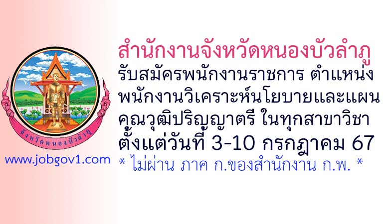 สำนักงานจังหวัดหนองบัวลำภู รับสมัครพนักงานราชการทั่วไป ตำแหน่งพนักงานวิเคราะห์นโยบายและแผน ตั้งแต่วันที่ 3-10 กรกฎาคม 2567