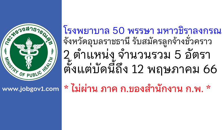 โรงพยาบาล 50 พรรษา มหาวชิราลงกรณ จังหวัดอุบลราชธานี รับสมัครลูกจ้างชั่วคราว 5 อัตรา ตั้งแต่บัดนี้ถึง 12 พฤษภาคม 2566