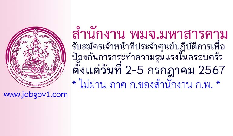 สำนักงาน พมจ.มหาสารคาม รับสมัครเจ้าหน้าที่ประจำศูนย์ ปฏิบัติการเพื่อป้องกันการกระทำความรุนแรงในครอบครัว ตั้งแต่วันที่ 2-5 กรกฎาคม 2567