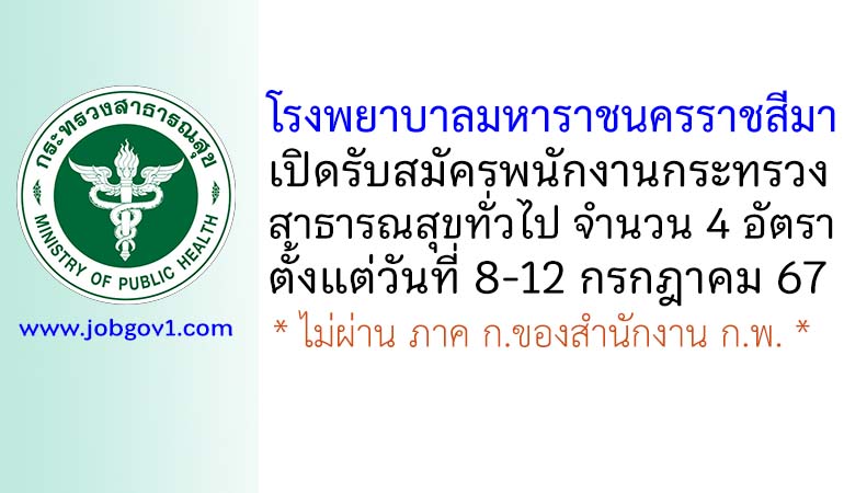 โรงพยาบาลมหาราชนครราชสีมา รับสมัครพนักงานกระทรวงสาธารณสุขทั่วไป 4 อัตรา ตั้งแต่วันที่ 8-12 กรกฎาคม 2567