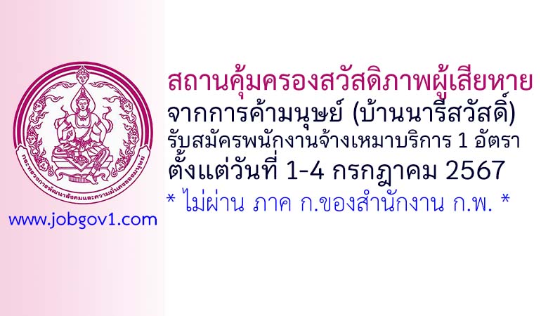 สถานคุ้มครองสวัสดิภาพผู้เสียหายจากการค้ามนุษย์ (บ้านนารีสวัสดิ์) รับสมัครพนักงานจ้างเหมาบริการ 1 อัตรา ตั้งแต่วันที่ 1-4 กรกฎาคม 2567