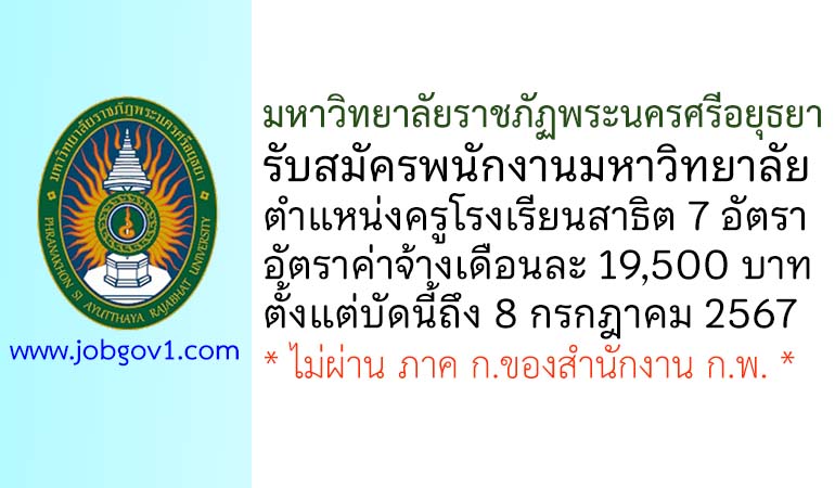 มหาวิทยาลัยราชภัฏพระนครศรีอยุธยา รับสมัครพนักงานมหาวิทยาลัย ตำแหน่งครูโรงเรียนสาธิต 7 อัตรา ตั้งแต่บัดนี้ถึง 8 กรกฎาคม 2567