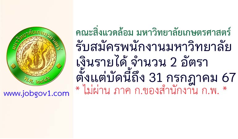คณะสิ่งแวดล้อม มหาวิทยาลัยเกษตรศาสตร์ รับสมัครพนักงานมหาวิทยาลัยเงินรายได้ 2 อัตรา ตั้งแต่บัดนี้ถึง 31 กรกฎาคม 2567