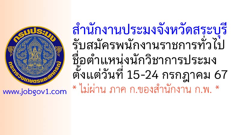 ประกาศกรมประมง เรื่อง รับสมัครบุคคลเพื่อเลือกสรรเป็นพนักงานราชการทั่วไป สังกัด สำนักงานประมงจังหวัดสระบุรี