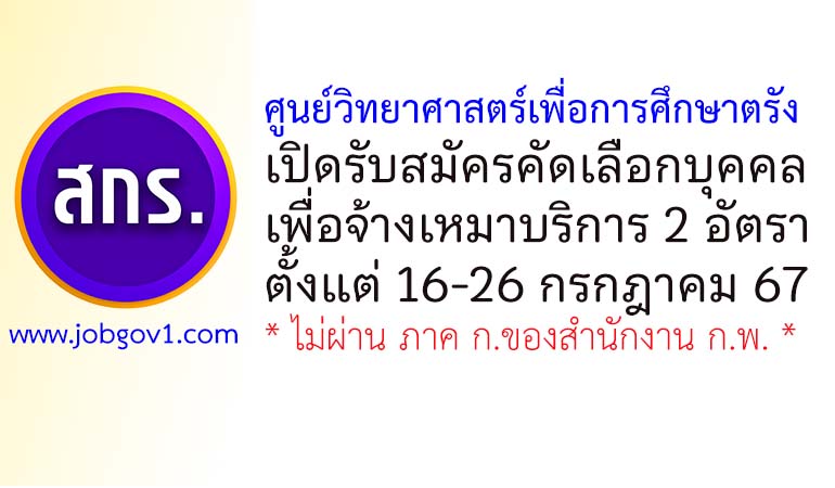 ศูนย์วิทยาศาสตร์เพื่อการศึกษาตรัง รับสมัครคัดเลือกบุคคลเพื่อจ้างเหมาบริการ 2 อัตรา ตั้งแต่วันที่ 16-26 กรกฎาคม 2567