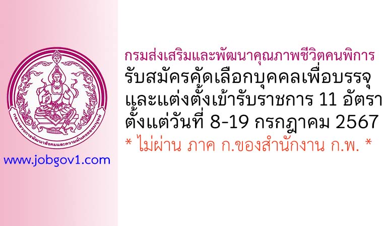 กรมส่งเสริมและพัฒนาคุณภาพชีวิตคนพิการ รับสมัครคัดเลือกบุคคลเพื่อบรรจุและแต่งตั้งเข้ารับราชการ 11 อัตรา ตั้งแต่วันที่ 8-19 กรกฎาคม 2567