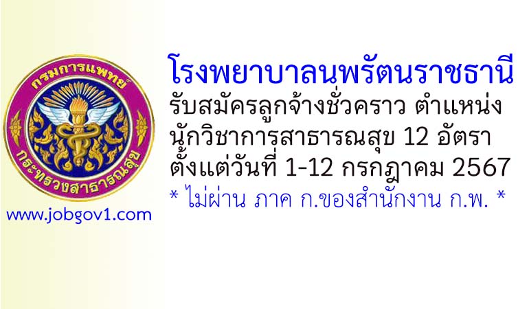 โรงพยาบาลนพรัตนราชธานี รับสมัครลูกจ้างชั่วคราว ตำแหน่งนักวิชาการสาธารณสุข 12 อัตรา ตั้งแต่วันที่ 1-12 กรกฎาคม 2567