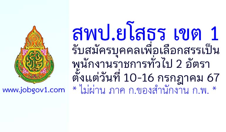 สพป.ยโสธร เขต 1 รับสมัครบุคคลเพื่อเลือกสรรเป็นพนักงานราชการทั่วไป 2 อัตรา ตั้งแต่วันที่ 10-16 กรกฎาคม 2567