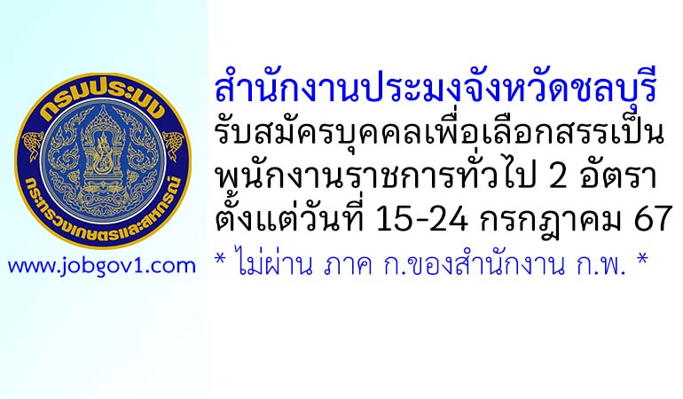 สำนักงานประมงจังหวัดชลบุรี รับสมัครบุคคลเพื่อเลือกสรรเป็นพนักงานราชการทั่วไป 2 อัตรา ตั้งแต่วันที่ 15-24 กรกฎาคม 2567