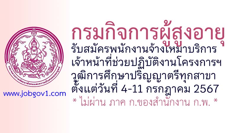 กรมกิจการผู้สูงอายุ รับสมัครพนักงานจ้างเหมาบริการ ตำแหน่ง เจ้าหน้าที่ช่วยปฏิบัติงานโครงการฯ ตั้งแต่วันที่ 4-11 กรกฎาคม 2567