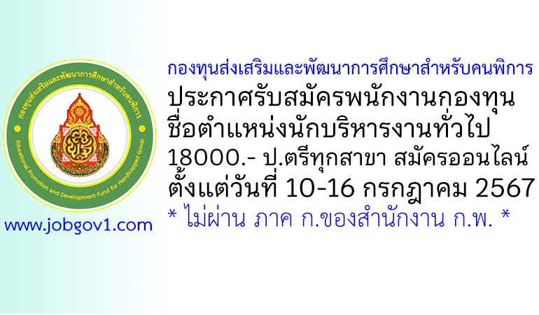 กองทุนส่งเสริมและพัฒนาการศึกษาสำหรับคนพิการ รับสมัครพนักงานกองทุน ตำแหน่งนักบริหารงานทั่วไป ตั้งแต่วันที่ 10-16 กรกฎาคม 2567