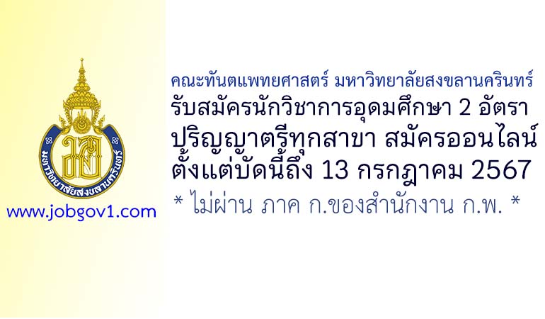 คณะทันตแพทยศาสตร์ มหาวิทยาลัยสงขลานครินทร์ รับสมัครนักวิชาการอุดมศึกษา 2 อัตรา ตั้งแต่บัดนี้ถึง 13 กรกฎาคม 2567
