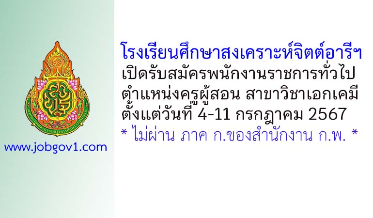 โรงเรียนศึกษาสงเคราะห์จิตต์อารีฯ รับสมัครพนักงานราชการทั่วไป ตำแหน่งครูผู้สอน สาขาวิชาเอกเคมี ตั้งแต่วันที่ 4-11 กรกฎาคม 2567