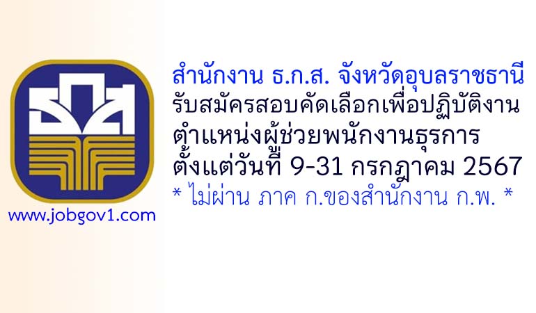 สำนักงาน ธ.ก.ส. จังหวัดอุบลราชธานี รับสมัครสอบคัดเลือกเพื่อปฏิบัติงาน ตำแหน่งผู้ช่วยพนักงานธุรการ ตั้งแต่วันที่ 9-31 กรกฎาคม 2567