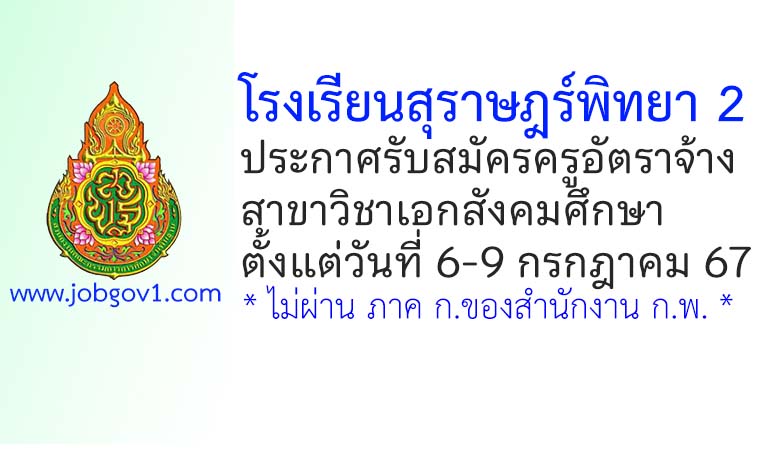 โรงเรียนสุราษฎร์พิทยา 2 รับสมัครครูอัตราจ้าง สาขาวิชาเอกสังคมศึกษา ตั้งแต่วันที่ 6-9 กรกฎาคม 2567