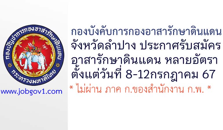 กองบังคับการกองอาสารักษาดินแดนจังหวัดลำปาง รับสมัครสมาชิกกองอาสารักษาดินแดน ประจำปีงบประมาณ พ.ศ. 2567 ตั้งแต่วันที่ 8-12 กรกฎาคม 2567