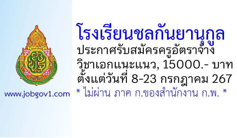 ประกาศโรงเรียนชลกันยานุกูล เรื่อง รับสมัครสอบคัดเลือกบุคคลเพื่อจ้างเป็นครูอัตราจ้าง